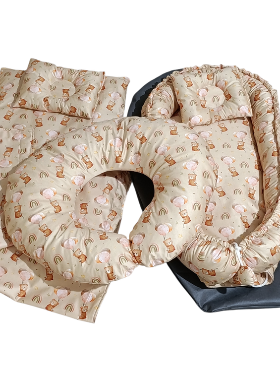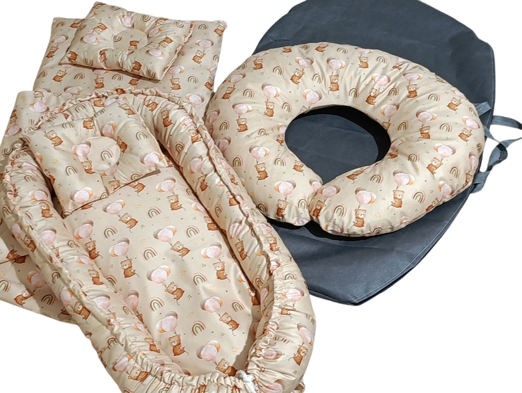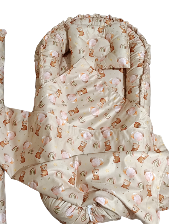 جنس پارچه مخمل خیلی لطیف اصل و مناسب با پوست کودک دارای بالشت حالت دهنده سر نوزاد و پتو مناسب تا دوسالگی تا حدودی قابل تنظیم اندازه تشک دوطرفه میباشد پارچه قابل شستشو می باشد دارای الیاف ضد حساسیت دارای ساک حمل می باشد